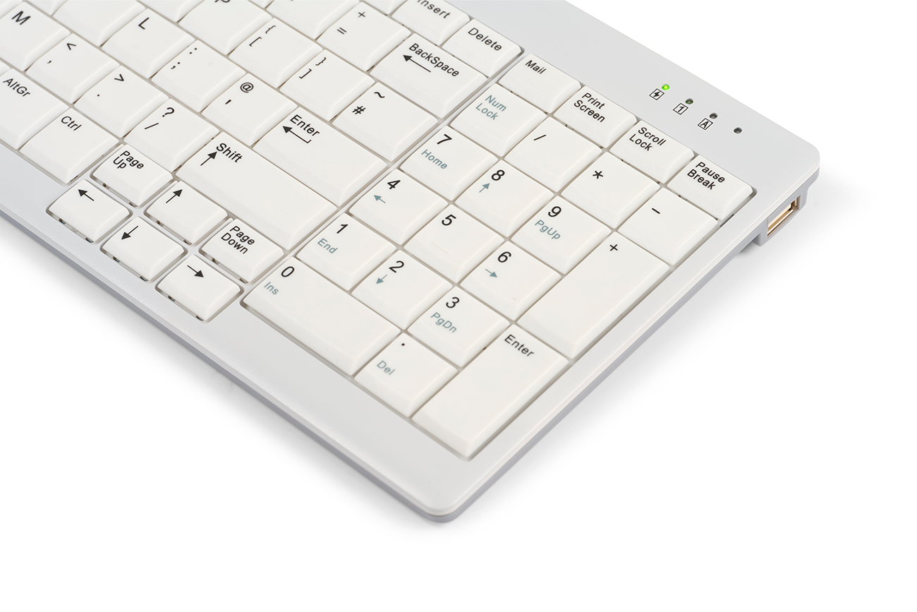 Het meest compacte standaard USB-C toetsenbord met een ingebouwd numeriek en twee geïntegreerde USB-A poorten.
